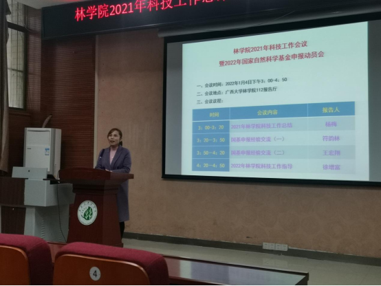 2022年1月4日下午,beat365官网在112报告厅召开beat365平台官方网站2021年科技工作总结暨2022年国家自然科学基金申报动员会。学院领导班子全部出席,学院全体专职教师参加大会,会议由副院长杨梅同志主持。