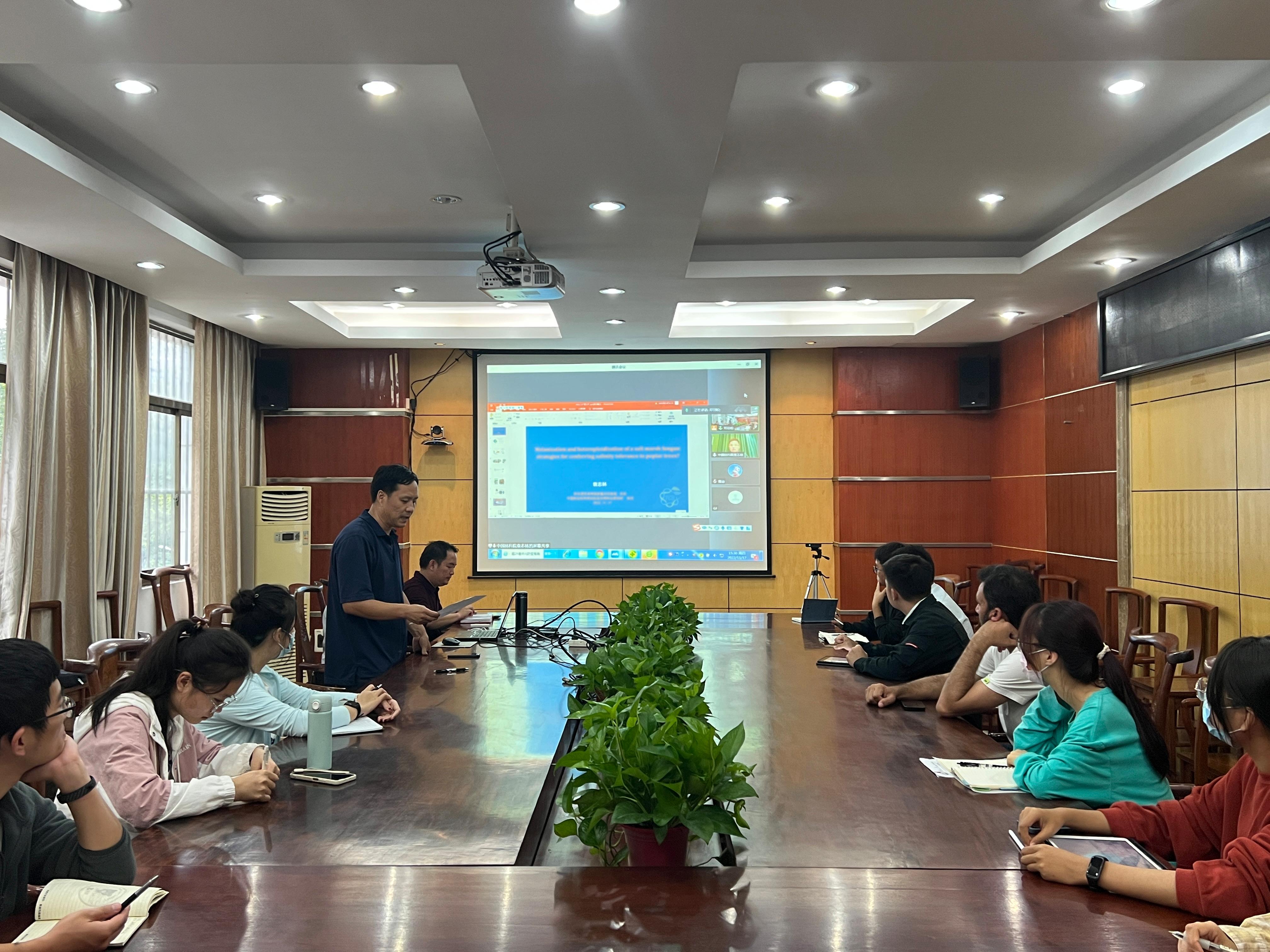 报告结束后,袁志林研究员与参会人员就DSEs杂合优势以及创制新型功能菌剂的未来研究方向进行讨论。报告为如何提升苗木对盐碱环境的适应性提供了相应理论和技术依据,为双方建立了良好的科研合作交流平台。