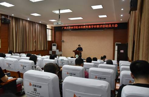 叶绍明常务副院长作动员讲话。他指出,本科教育教学审核评估是对学校教育教学改革、人才培养等整体状况的全面“体检”,既是机遇更是挑战。我们要摆正主人翁的姿态,以评估为契机,落实“以本为本”的要求,切实提高本科教育教学水平。他还指出,全院教师要全力配合做好两个问卷调查、八项材料和两类访谈的培训和准备、完善调阅材料,以最饱满的精神状态上好每一堂课,为共同营造良好迎评氛围而努力。