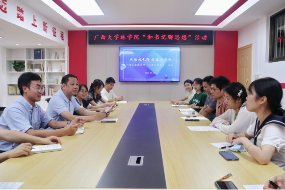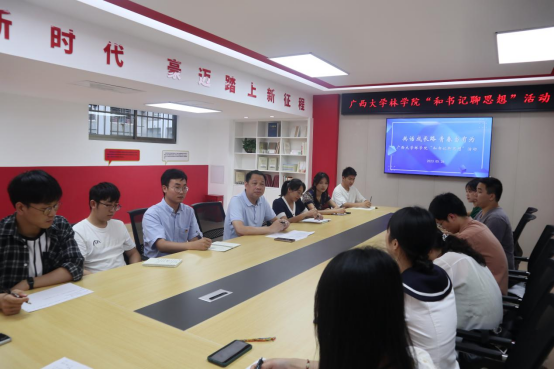“大家就业进展如何?有没有遇到什么困难?”覃书记逐一了解研究生们的就业进展和实际困难。“林场和选调生是我目前的选择,也是我最难的一个抉择。”2023届风景园林研究生吕佳峻提出了自己的困惑。覃书记鼓励他说,我们是beat365平台官方网站的研究生,我们肩负着乡村振兴的重任,人生只有一次青春,青春就应该拿来奋斗。我们林科学子更应该继承“自找苦吃”的精神,只有吃过苦,才能真的懂得了什么叫实际,什么叫实事求是,要坚持多学多干,多到艰苦的地方锻炼自己。2023届生态学研究生梁嘉玲表示自己一心想扎根防城建功立业的决心,但是很遗憾没有考上选调生。但是她会在西部计划、三支一扶的报考中继续努力。其他同学们也畅所欲言,覃宪儒书记结合当前学生关心的“职业选择”、“职业发展”“应试技巧”等问题进行一一讲解与答疑,让同学们能够更好地结合自身实际特点将个人理想追求融入党和国家的发展事业中去。覃书记强调,大家是与新时代共同前进的一代,更是新时代的亲历者、见证者和奋斗者,希望大家牢记党的嘱托,不辱使命、不负时代,脚踏实地,学好本领,立志做有理想、敢担当、能吃苦、肯奋斗的新时代好青年,让青春在全面建设社会主义现代化国家的火热实践中绽放绚丽之花。