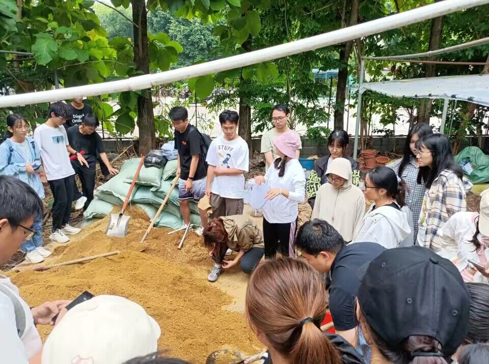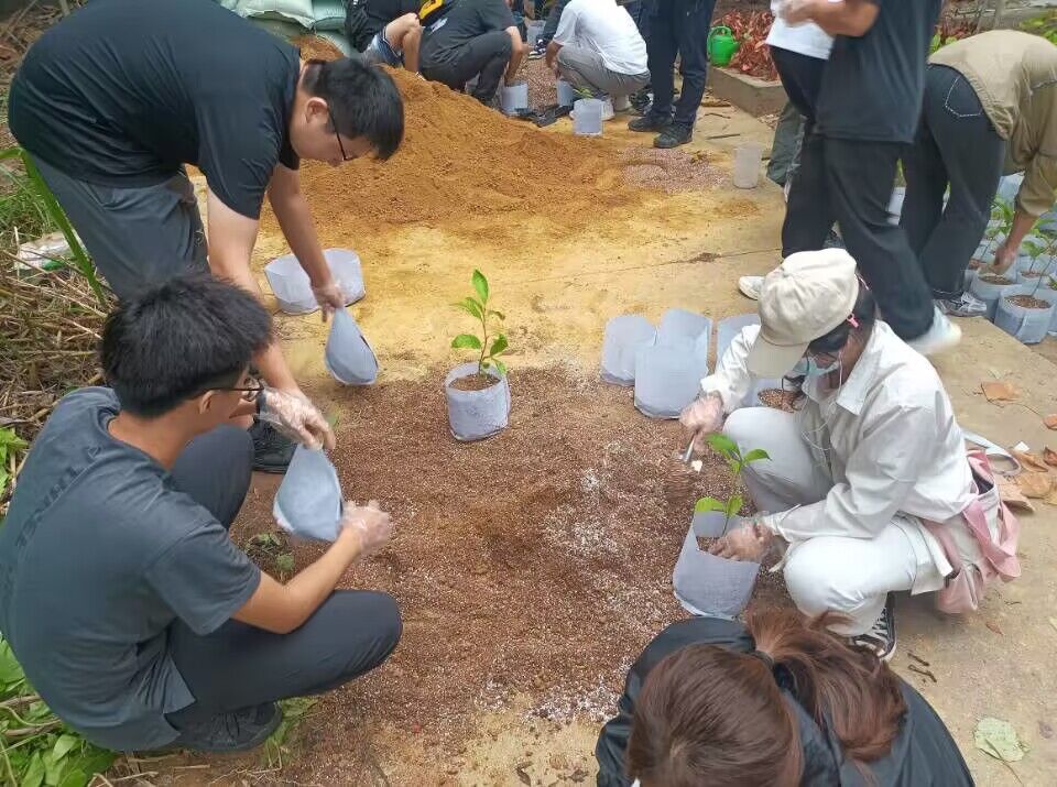 现场,班主任徐圆圆老师带领同学们参观教学实习基地苗圃,向同学们详细讲解了苗圃的组成以及容器苗培育的关键技术。紧接着,beat365官网2023级生态学博士研究生马道承向同学们介绍苗木种类、育苗容器和基质选择,并亲身示范育苗基质的配制及观光木容器苗的换盆移栽过程。同学们听得饶有兴致,以小组为单位,争先恐后的参与到“容器苗培育—观光木苗木换盆移栽”劳动实践活动中。