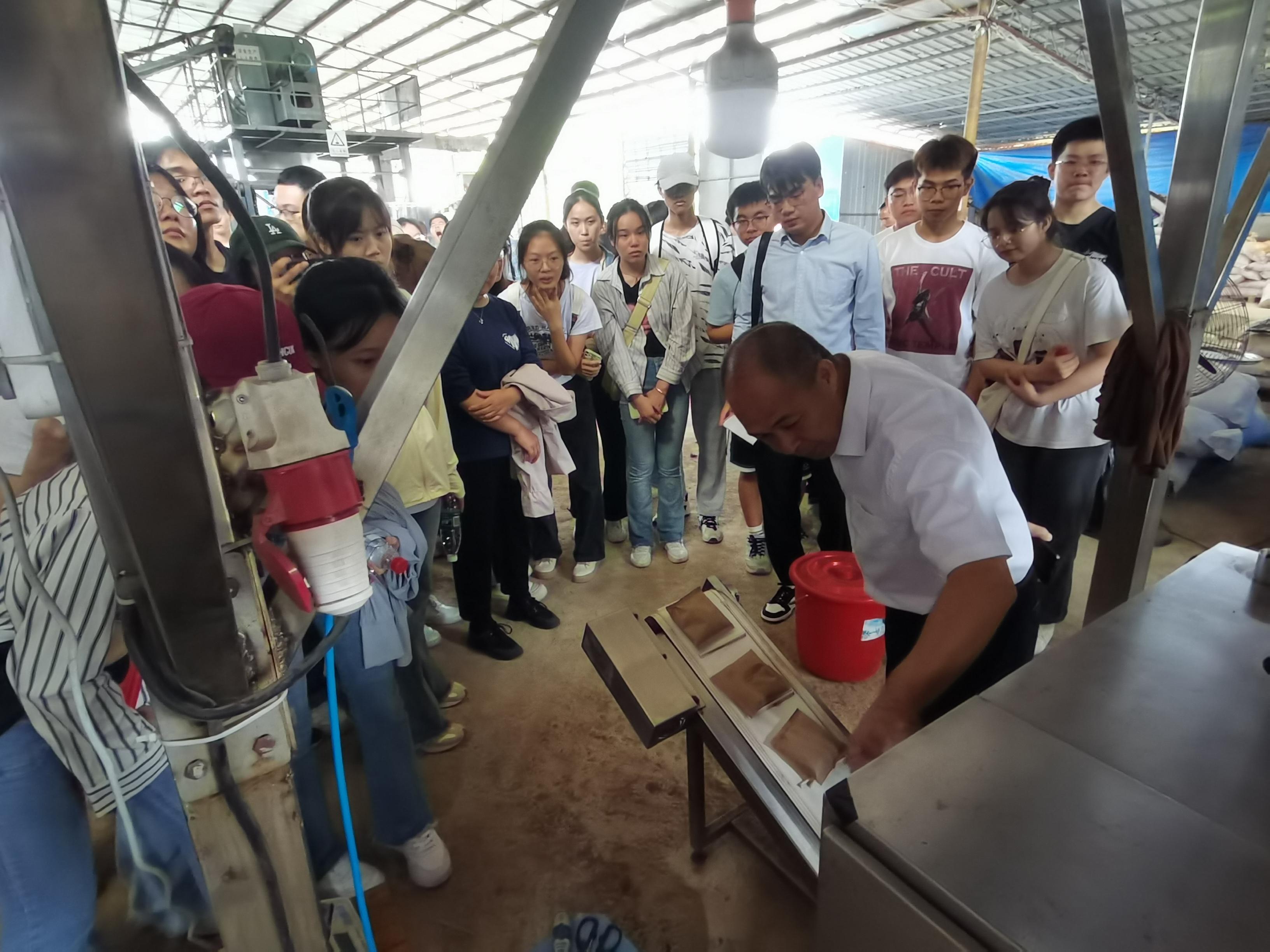 随后,在林用新型肥料研发中心林科院潘波老师为同学们介绍石漠地区林下中药材复合经营模式以及新型肥料加工生产原理。紧接着,同学们参观肥料加工车间,在王会利副所长的悉心指导下,同学们分组完成肥料原料添加、接收袋控缓释肥等劳动实践任务,增强实践操作能力的同时,也掌握了相关技能的操作要领。