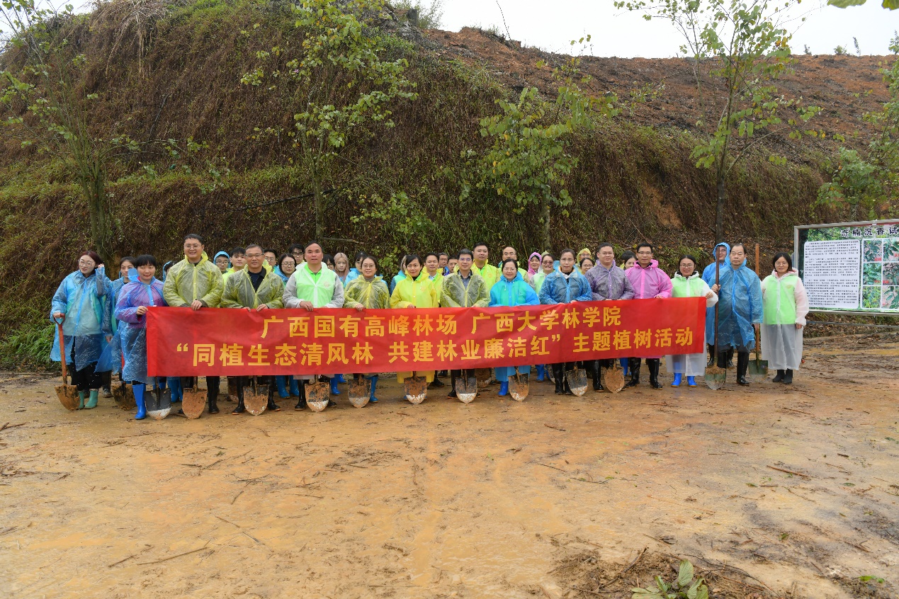 3月13日,beat365官网与广西国有高峰林场联合开展“同植生态清风林 共建林业廉洁红”主题植树活动,组织60多名党员干部、青年志愿者共植新绿,以实际行动传播廉洁正能量。院党委书记符韵林、党委副书记、纪委书记徐丽,副院长杨梅、招礼军,广西国有高峰林场党委书记陆珍先、党委副书记、纪委书记陆艳武、副场长邓福春、黄正根出席活动。