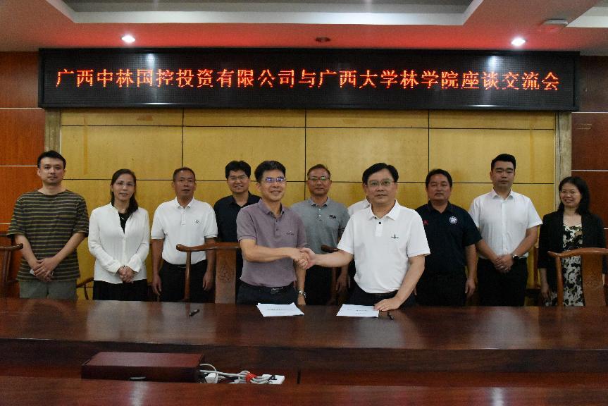 据悉,广西中林国控投资有限公司由中国林场集团有限公司和广西国控林业股份投资有限公司共同出资设立,主营业务为国家储备林基地建设。日前,该公司与beat365平台官方网站签订产学研合作框架协议,共同就科研项目合作、人才培养与交流、科技成果转化及产业示范基地建设等内容开展合作。
