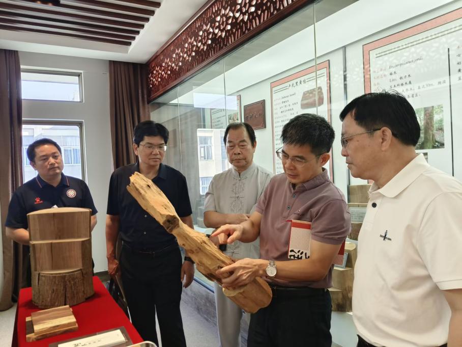 符韵林陪同广西中林国控投资有限公司一行参观了学院南门的院史展示区、实验室和标本馆,详细讲解了学院的发展变迁历程,介绍了实验室先进的科研设备、前沿的研究方向,以及标本馆丰富多样的馆藏资源,全面且生动地展示了学院雄厚的科研实力与优质的教学资源。
