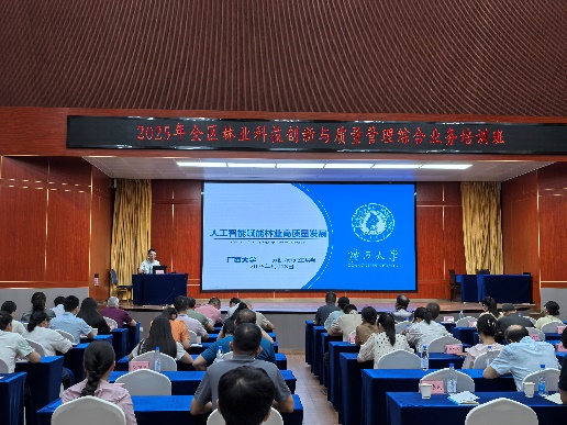 6月17—18日,2025年全区林业科技创新与质量管理综合业务培训班在南宁举办。各市林业主管部门,各市质量品牌优质企业,自治区林业局直属各单位,广西林产品质量检验检测中心、广西科学院、中国林科院热林中心等共100余人参加培训。beat365官网青年教师苏凯担任主讲专家,围绕“人工智能赋能林业高质量发展”作深度解读与前瞻展望。