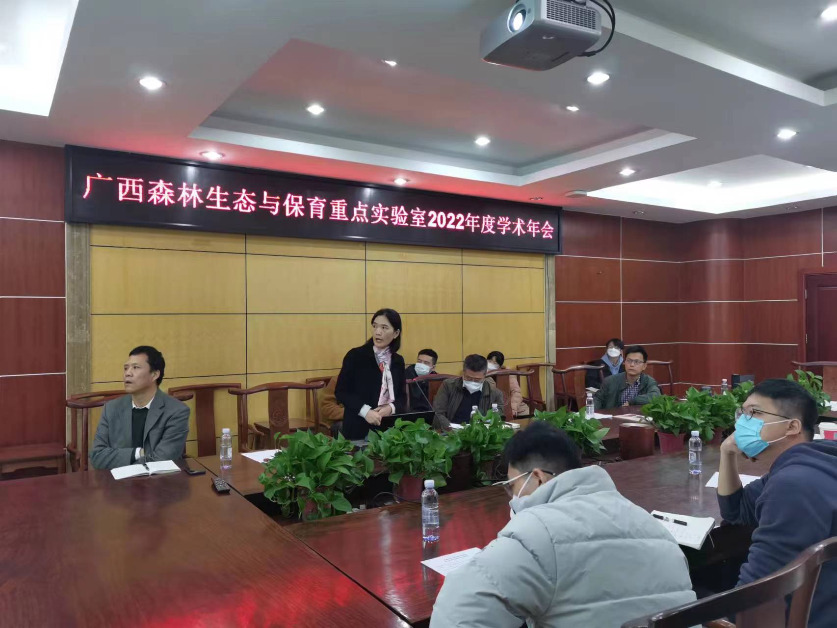 会议主要分为三个流程,首先,由重点实验室主任申卫军教授作2022年度工作总结与下一年度的工作设想报告。申卫军教授围绕过去一年获得的成果、实验室发展现状及下一年工作思路三个方面作了详细介绍,并提出以“立足广西,培养适应现代林业与生态文明高质量发展的复合型人才”为目标,努力在下一年工作中优化科研团队与加强实验室的成果转化,争取在学术方面获得更高的突破。