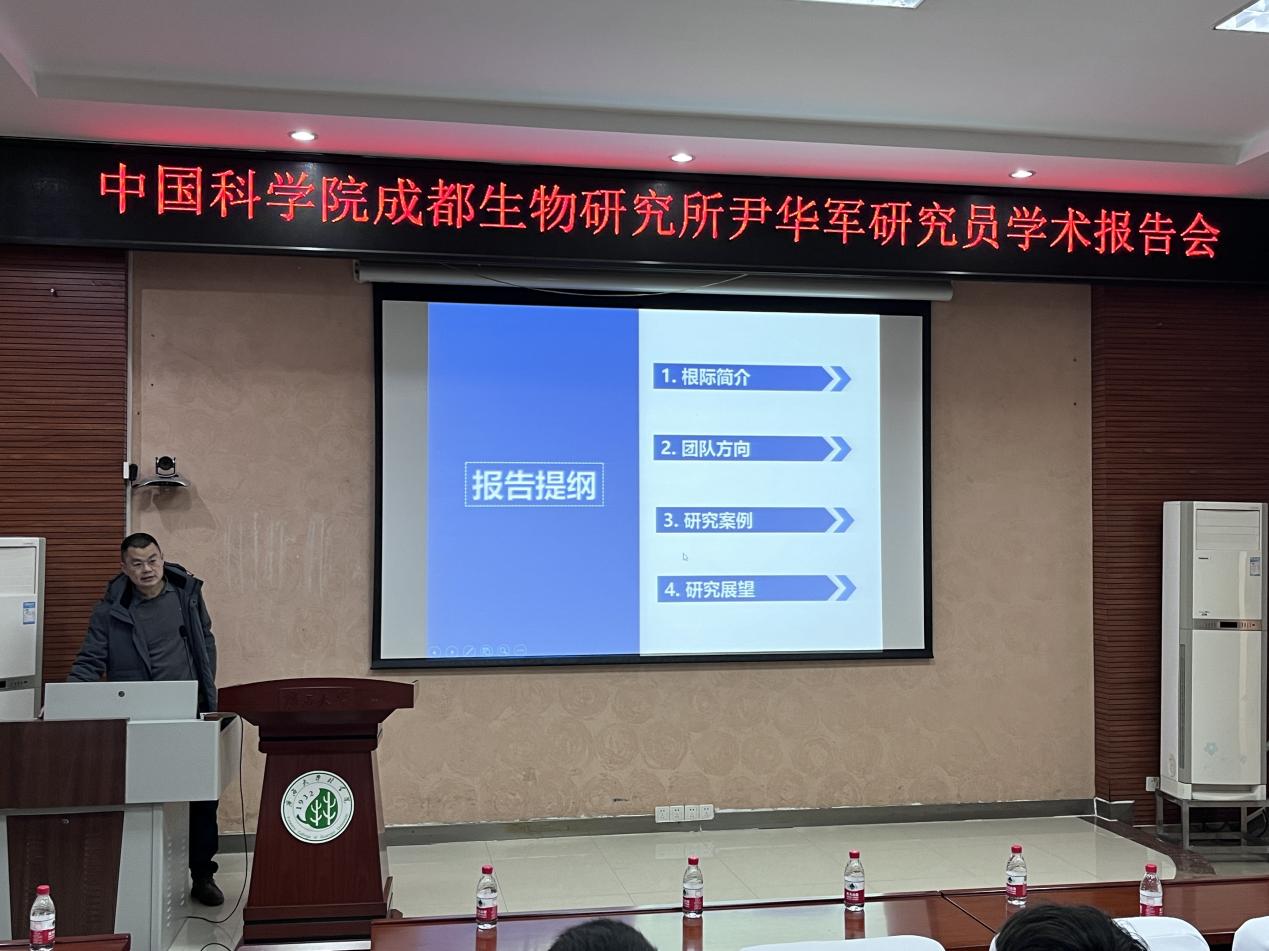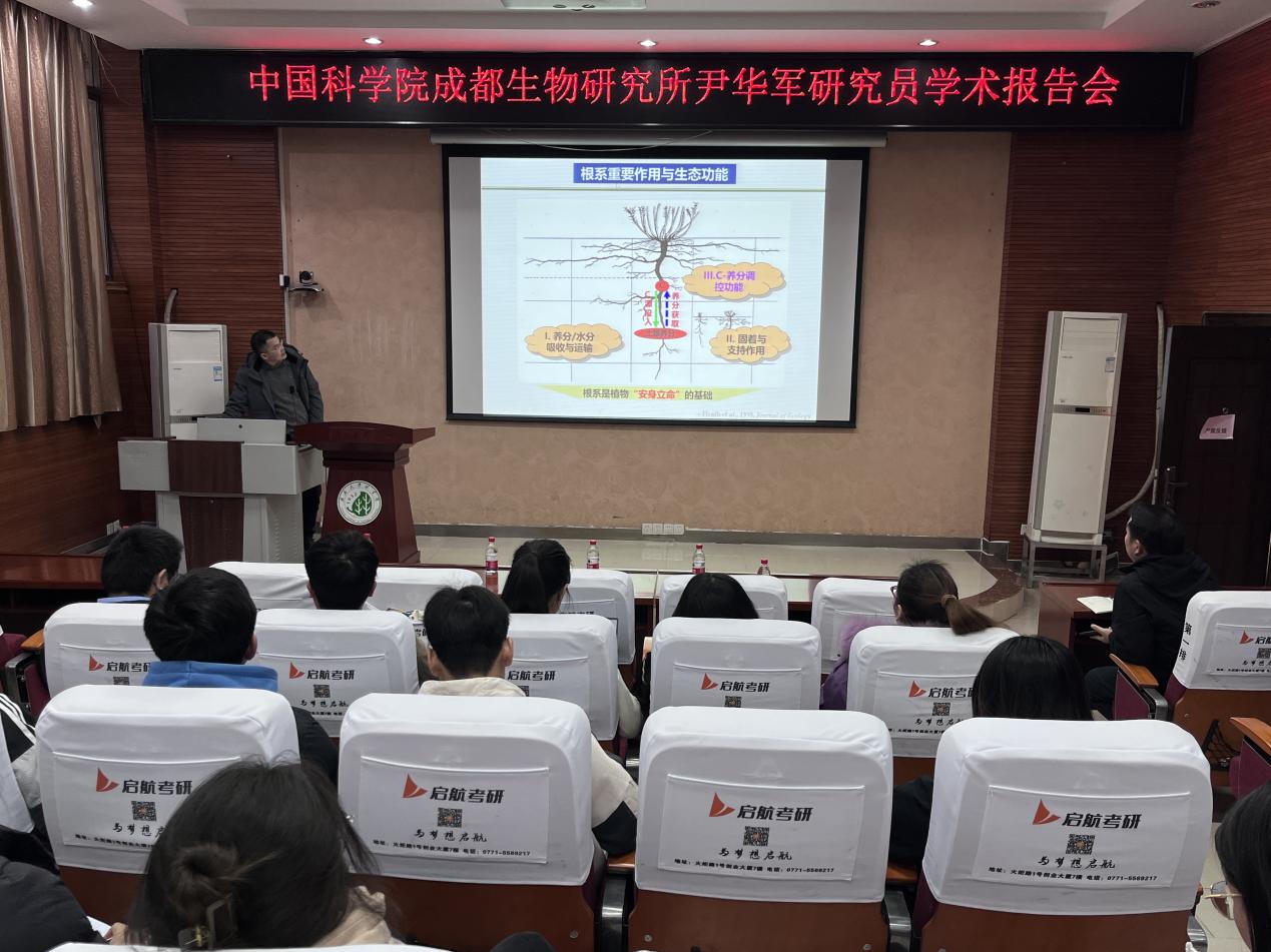2023年12月24日至25日,中国科学院成都生物研究所尹华军研究员受邀到beat365官网开展学术交流活动,并作了题为“高寒森林根际生态过程研究”的学术报告。本次学术报告会由beat365官网副院长尤业明老师主持,学院相关教师、研究生和本科生共计100余人聆听了学术报告。