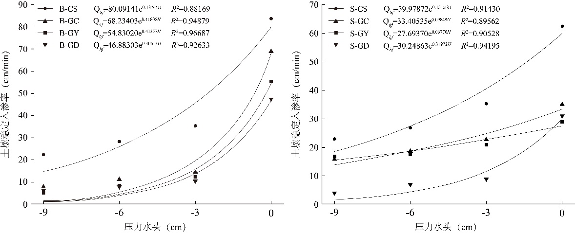该研究采用原位染色示踪技术以及圆盘入渗方法,定量分析白云岩和砂页岩土壤水文过程包括优先流发育和入渗性能,并结合根系分布、土壤性质等因素,阐明了两种典型岩性土壤水文过程及驱动因素的异同点。结果表明:白云岩土壤优先流分化程度高,多呈树枝状和斑块状,以垂向延伸为主;砂页岩土壤优先流因侧渗明显,多呈团状和块状分布,分化程度较低。白云岩土壤不同宽度染色路径均大于砂页岩,两种土壤的壤中流均以大孔隙流为主。土壤稳定入渗率均随着压力水头的增大而增大,且白云岩土壤导水能力强于砂页岩。岩性的变化造成植被根系分布以及土壤性质差异是影响土壤优先流和入渗的重要因子。该研究揭示了喀斯特地区不同岩性发育土壤的水文特征及其驱动因素,为区域石漠化综合治理以及水资源的合理利用提供科学支撑。