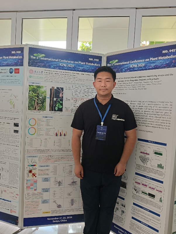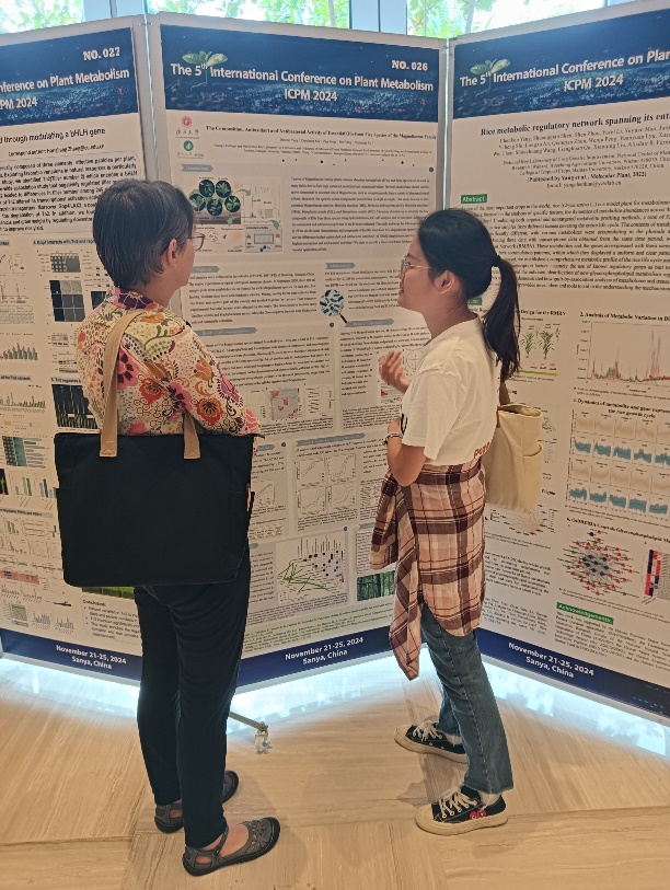 2024年11月21日—25日,第五届植物代谢国际会议(the 5thInternational Conference on Plant Metabolism,ICPM 2024)在海南省三亚市召开。本届会议以“植物代谢与设计育种”为主题,设有代谢组学和多维组学、合成生物学、萜类/酚类物质的生物合成与调控等13个专题,对植物代谢基础理论研究、方法研究、育种应用等相关领域前沿研究进展及未来发展方向进行了研讨。beat365官网杨梅教授指导的2023级博士研究生马道承、徐圆圆老师指导的2022级硕士研究生杨丹丹报名参加本次会议。