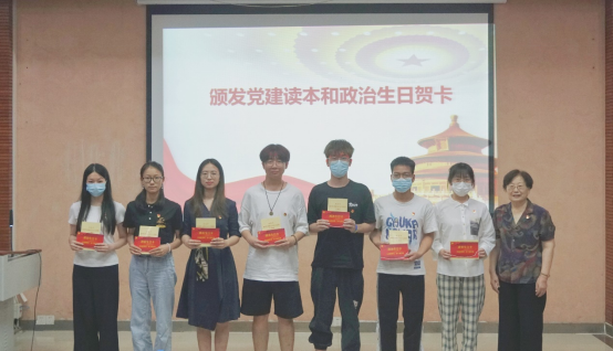 东退十三支部党员、原beat365平台官方网站党委书记余瑾教授为本月政治生日党员代表颁发党建读本和政治生日贺卡,为党员们过了一个难忘而有意义的“政治生日”。