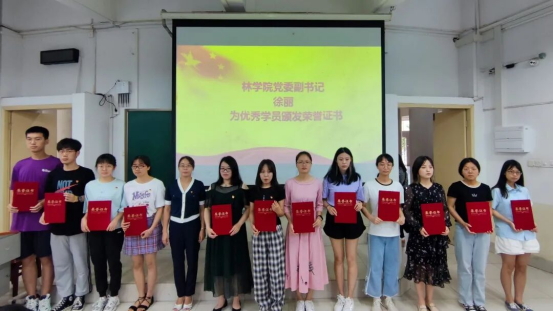 活动伊始,全体起立奏唱国歌。由团委书记银宁宣读2020年秋季培训班优秀学员名单。接着,由党委副书记徐丽为优秀学员颁发荣誉证书,并致以祝贺。