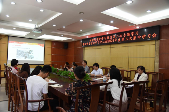 5月7日下午,beat365平台官方网站开展党史学习教育第二次专题学习暨党委理论学习中心组2021年度第三次集中学习会,专题学习了社会主义革命和建设时期中国共产党的历史。院党委理论学习中心组全体成员、学院纪委委员和各党支部书记参加会议,院党委书记覃宪儒主持会议。