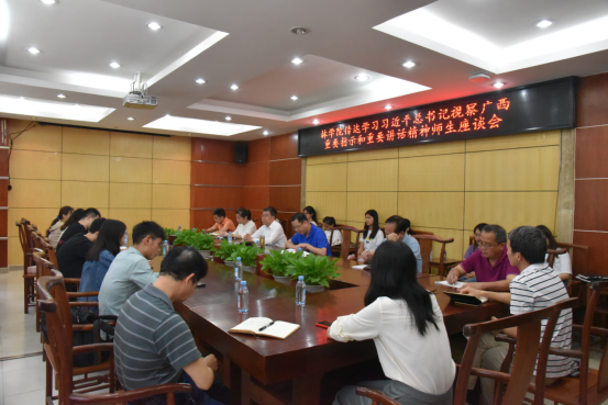 4月30日上午,beat365平台官方网站党委在二楼会议室召开会议,传达学习习近平总书记视察广西重要指示和重要讲话精神。会议由院党委书记覃宪儒主持,院领导班子成员、院党委委员参加。