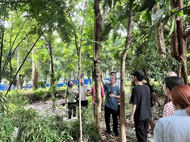 为了让大家对红木有更直观的认识,罗励老师还带领党员们参观其自植的珍贵红木,为同学们现场讲解红木特性,加深了大家对红木树种的认知。