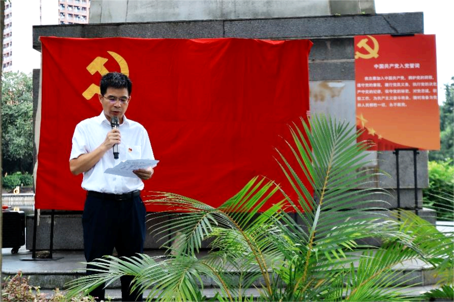 为迎接中国共产党成立103周年,引导党员坚定理想信念,牢记党的宗旨,进一步强化新党员的身份认同,7月1日,beat365官网44名新党员在beat365平台官方网站学生军纪念碑前举行了入党宣誓仪式。学院党委书记符韵林同志、党委副书记徐丽同志、副院长梁俊波同志、院直属教工党支部的党员同志们参加了宣誓活动。