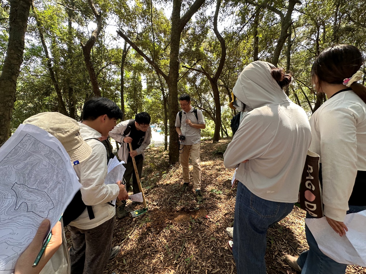 潘晓芳教授向学生讲授造林规划设计实习内容