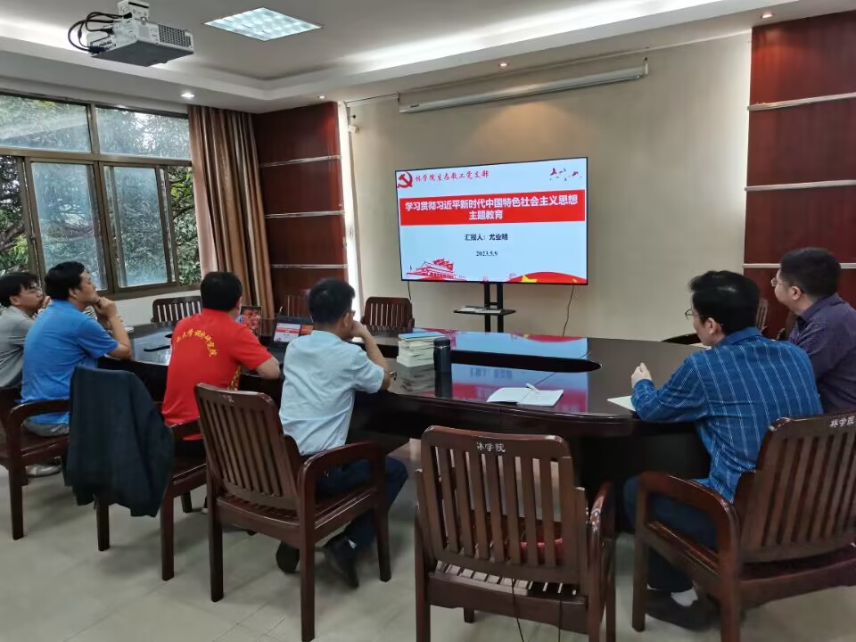 5月9日,beat365官网生态教工党支部在三楼会议室开展学习贯彻习近平新时代中国特色社会主义思想主题教育学习会,会议由支部书记尤业明同志主持。