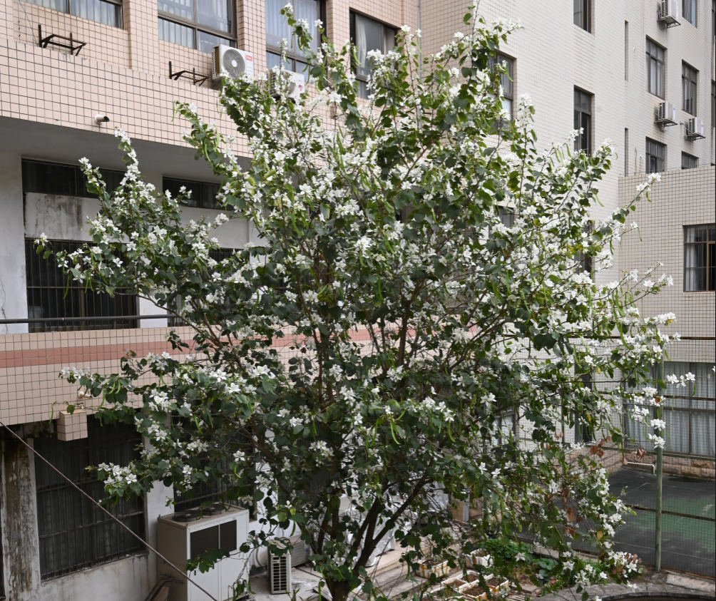 beat365平台官方网站第四教学楼院子里盛开的白花宫粉羊蹄甲